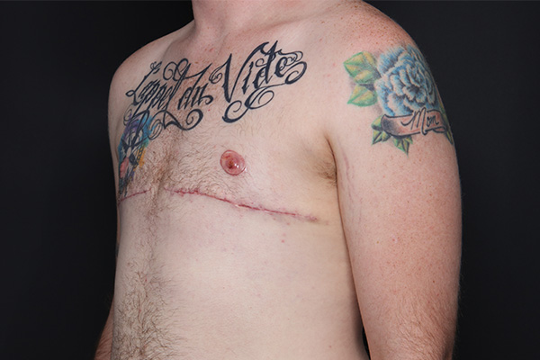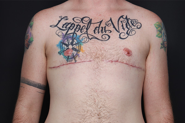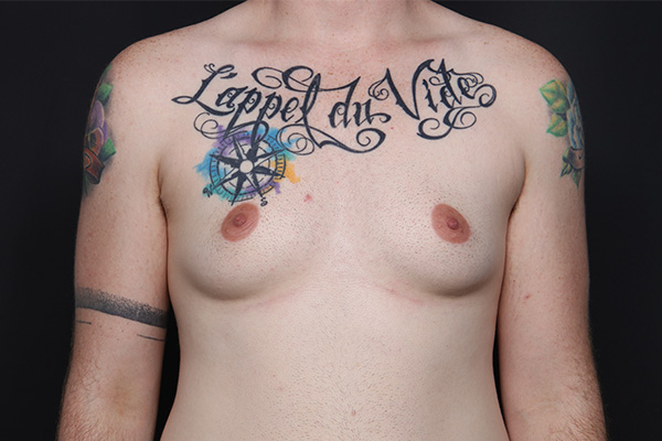 24 year old 5 weeks following double incision surgery with nipple grafting.
