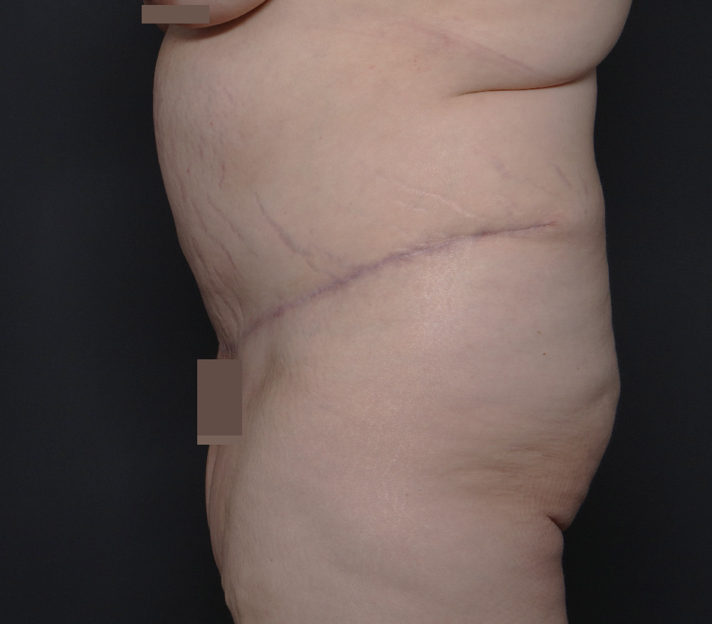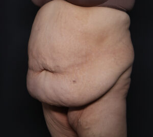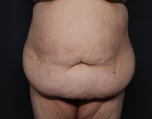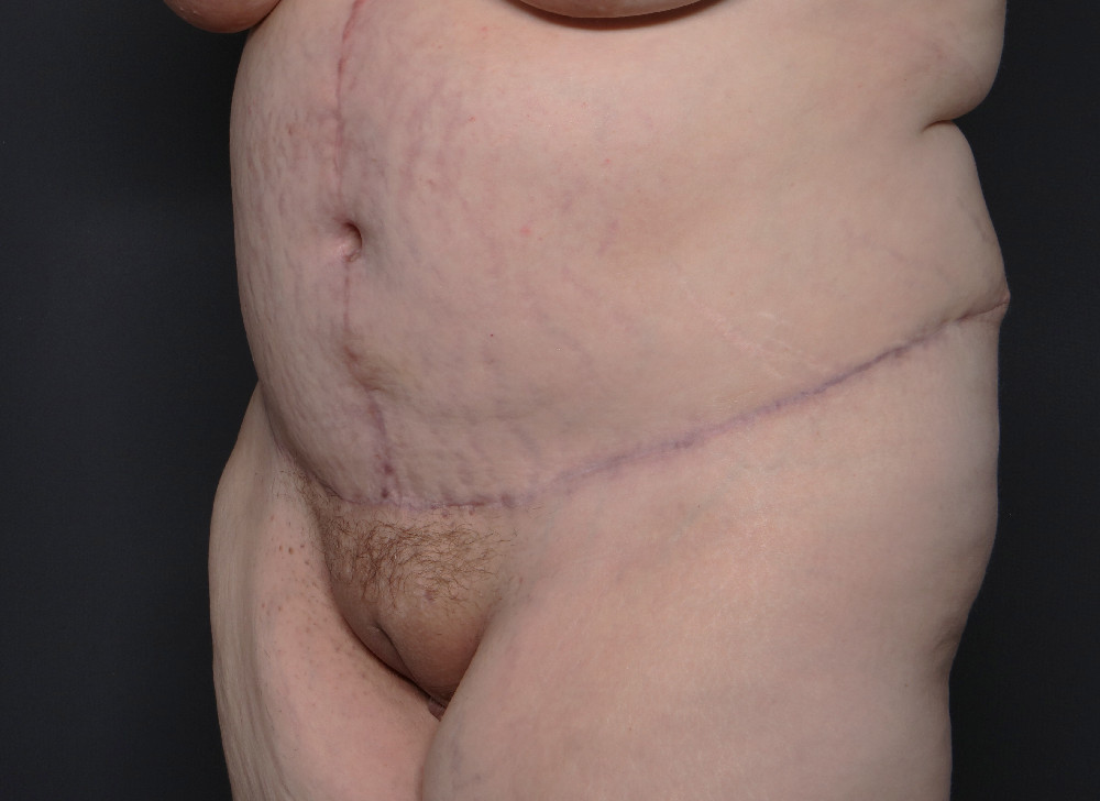 42-year-old woman 3 months following fleur-de-lis abdominoplasty with repair of the diastasis recti. Over 13 pounds of extra tissue was removed.